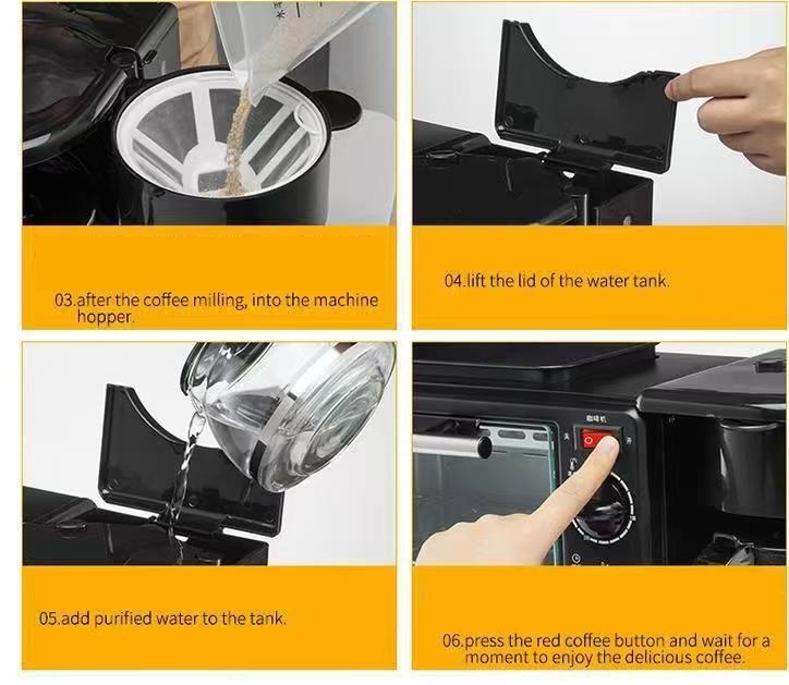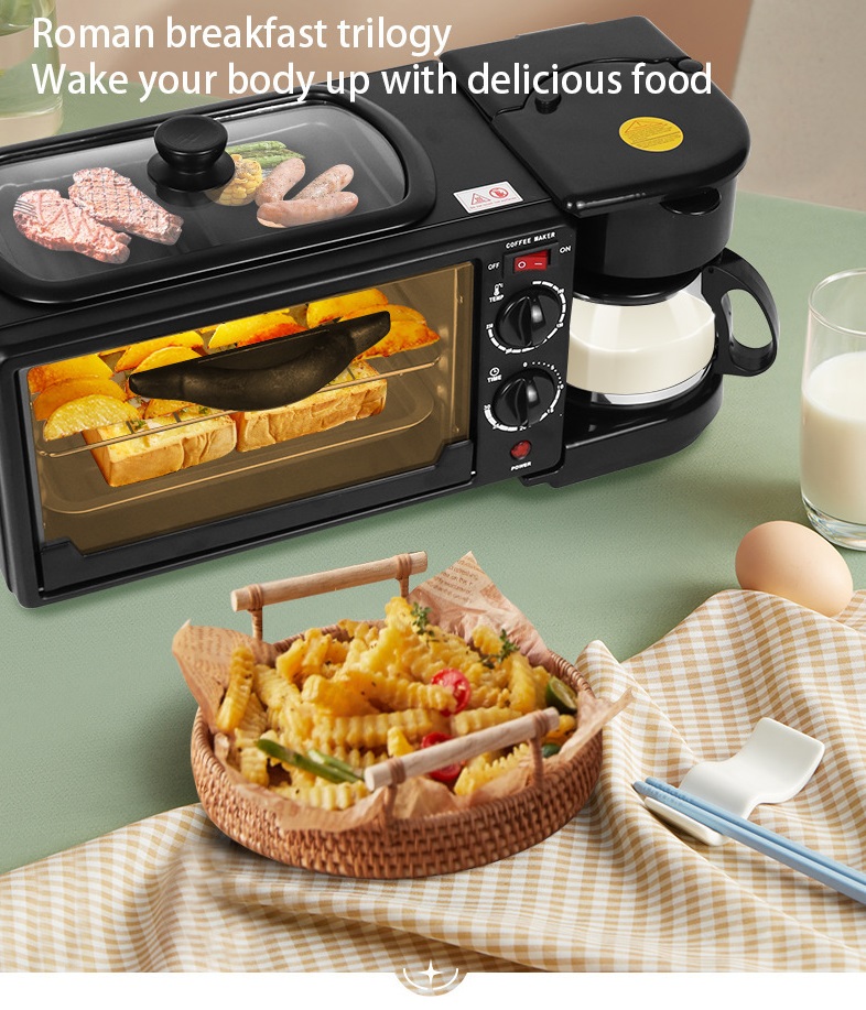 Na het proberen van meerdere ontbijtgereedschappen, is deze machine zonder twijfel de beste! Het is een 3-in-1 rooster, pan en koffiemaker—ideaal voor een volledig ontbijt. De koffiemaker kookt een sterke kop in 5 minuten, en de pan bakken eieren, pannenkoeken of hash browns zonder te kleven. De rooster heeft brede spleten, zodat het bagels of dikke broodplakken past. Ik houd ervan dat het all-in-één is—geen meer rommel op mijn tafel met afzonderlijke apparaten. De bediening is intuïtief, en de machine schakelt automatisch uit wanneer het klaar is, wat veilig is voor hectische ochtenden. Het is eenvoudig te schoonmaken (gewoon de oppervlakken veegen) en ziet er stijlvol uit in mijn keuken. Ik heb het aan alle mijn vriendinnen aanbevolen—definitief een must-have voor iedereen die zijn ochtend wilt vereenvoudigen!
